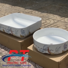 Lavabo khối vuông đen chỉ vàng LVBC13